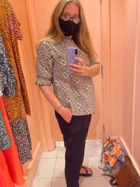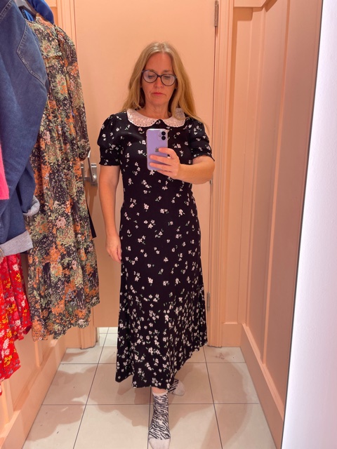 I visited my local store on the second day it opened (yes, I was keen) & I visited yesterday, so hopefully this is up to date. The weather has now changed, so long-sleeved longer line dresses feature heavily & tops & knitwear, so I have included those too, plus I have thrown in a practical pair of boots, all of these items are very versatile & multi seasonal, apart from the boots which would look a bit daft on a beach in July…but who knows with our British summer! There are quite a lot of tops in the sale too, I spotted a gorgeous organza floral top which would be a great special occasion, Christmas or a winter wedding.