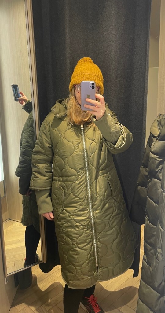 * Think practicality, for colour & washing, that cream wool coat might look gorgeous in the shop, but probably won’t withstand our British winter or a red wine spillage. And if you never dry clean anything, well then your coat will need to be washable.