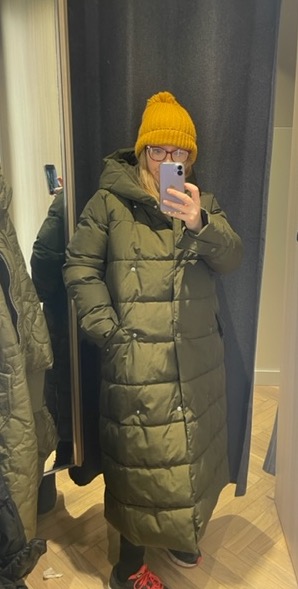*Make sure it is warm, some coats are just not that warm, down & wool are good options (I bought one recently that was made of recycled polyester, and it was like wearing a flattened cardboard box)